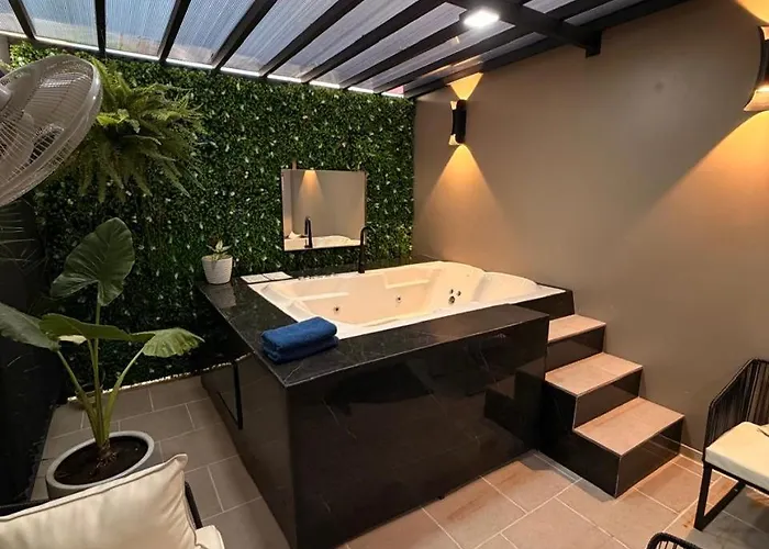 The 12 m² Los Angeles La Fortuna apartment is located in La Fortuna, only an 8-minute walk from Adifort, and boasts a hot tub. The apartment provides guests with garden views and a storage room.